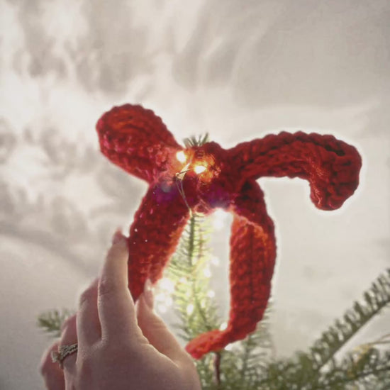 Bring timeless charm to your Christmas tree with our handcrafted Heirloom Christmas Bow — a cozy, classic, and beautifully nostalgic alternative to traditional tree toppers. Each bow is crocheted by hand using soft, textured yarn that drapes perfectly, creating that warm, cottage-style look loved in Ralph Lauren–inspired holiday decor.